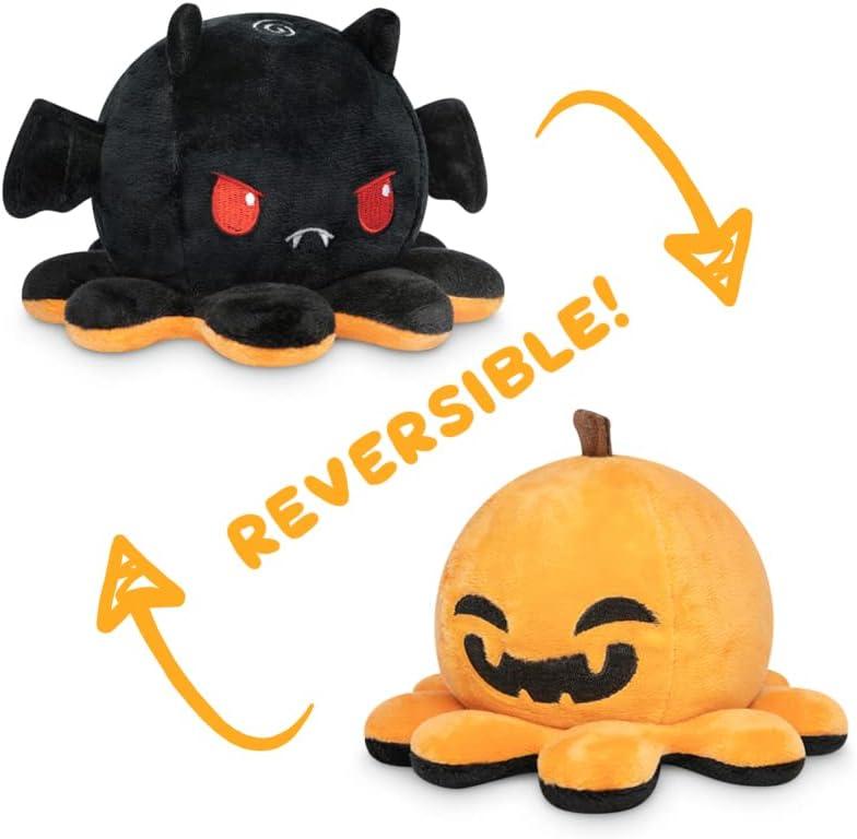 TeeTurtle - The Original Reversible Ghost Plushie - Blue + Purple - Cute Sensory Fidget Stuffed Animals That Show Your Mood - Perfect for Halloween!(Happy Pumpkin + Angry Bat)
