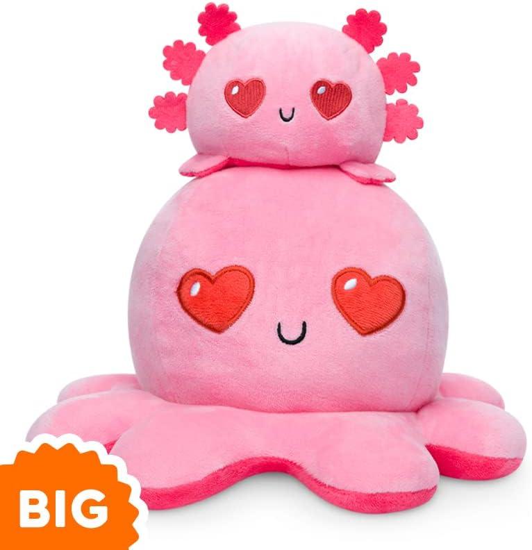 TeeTurtle – The Original Reversible Panda Plushie – BIG & Red Panda – Cute Sensory Fidget Stuffed Animals That Show Your Mood!(Light Pink Love + Dark Pink Rage Octopus)